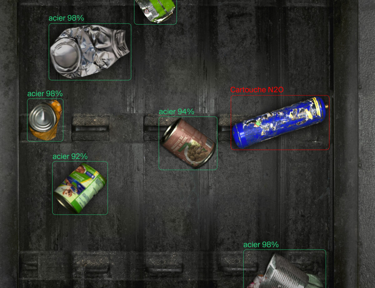 Dans ce contexte, des solutions automatisées peuvent également être déployées. C’est notamment le cas de Smart Filter, un système de détection par intelligence artificielle conçu pour identifier les bouteilles de protoxyde d’azote – ainsi que d’autres indésirables (barres métalliques, bouteilles de gaz, aérosols, etc.) – directement sur le convoyeur du flux acier.