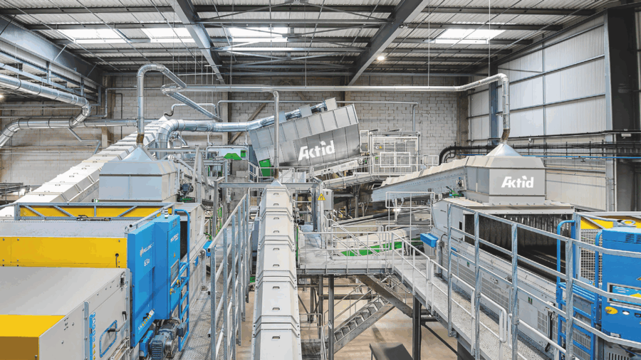 La nature du flux entrant, composé de déchets souillés par des fines organiques odorantes, a nécessité une adaptation spécifique du process. L’ensemble des convoyeurs et équipements est capoté, et un système d’aspiration multi-points de 100 000 m³/h dirige l’air vicié vers une unité dédiée au dépoussiérage et au lavage de l’air, garantissant des conditions d’exploitation maîtrisées.